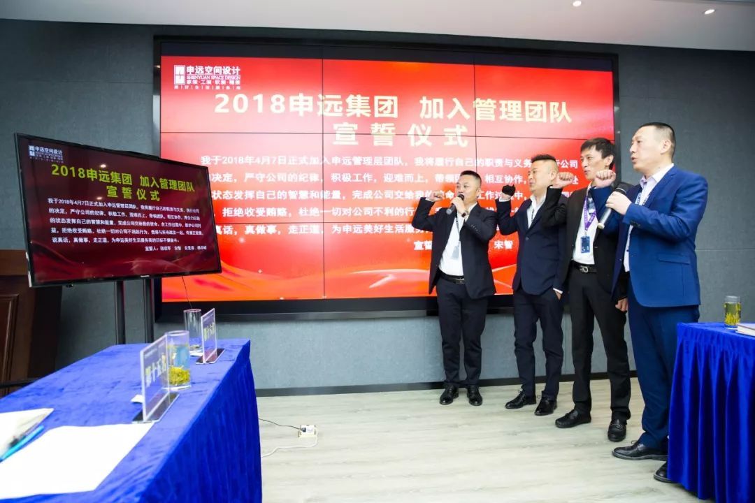 2018年4月7日,申远集团2018文化整装年第一季度工作总结暨第二季度工作计划会议在申远集团总部召开。集团总部、上海各大分公司及长三角区域各分公司的管理层齐聚一堂,用数据总结第一季度工作,用问题讨论探索客户需求,勇立军令状,落实文化整装新模式,让申远业主体验一站式拎包入住的装修服务。