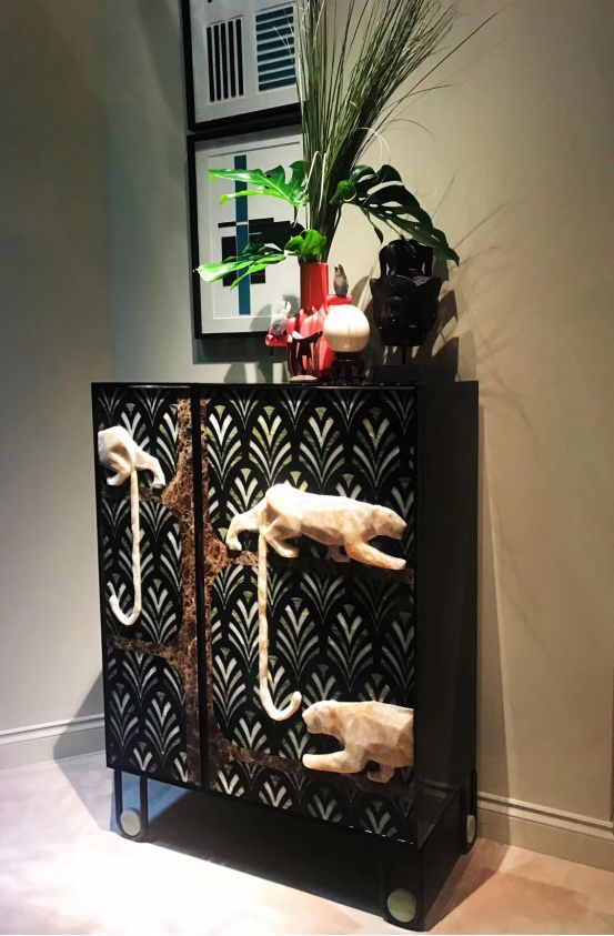 国外设计师对于东方元素的热爱在米兰展上也可窥见一斑,壁纸上的孔雀开屏图、